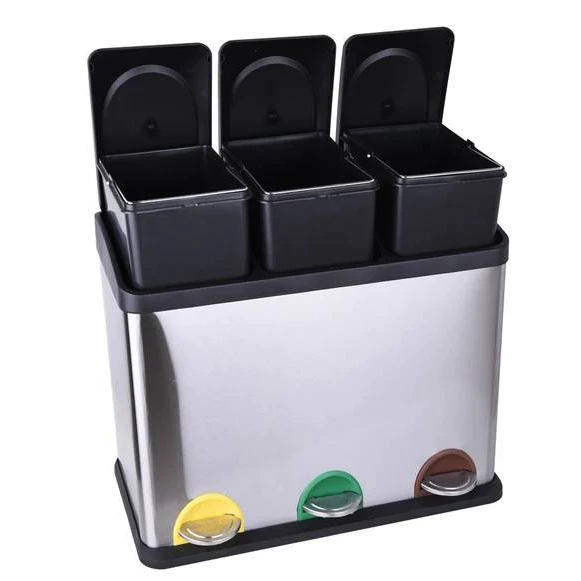 ถังขยะสแตนเลสแบบ3ช่องพร้อมแป้นเหยียบ ถังขยะรีไซเคิลขนาด 15 ลิตร*3