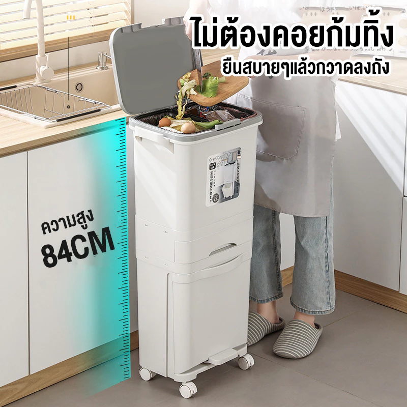 ถังขยะ ถังขยะแยกประเภท ถังขยะมินิมอล มี 2 ช่อง ขนาด 38 42 45L สำหรับห้องครัว มีฝาปิด พร้อมล้อเลื่อน